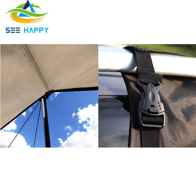 မြေပြင်သံချောင်း 8 ခု၊ 8m2 နှင့် 3m 4 လေကြိုးများကို အထောက်အပံ့နှင့်ဘောင်အဖြစ် အသုံးပြုပါသည်။ အဆောက်အဦသည် ခိုင်ခံ့ပြီး လေပြင်းနှင့် လှိုင်းလုံးများကို ခံနိုင်ရည်ရှိသည်။ Car Side Canopy ကို ရေစိုခံ Oxford ထည်ဖြင့် ပြုလုပ်ထားပြီး စခန်းချခြင်း၊ ကားခရီးသွားခြင်းနှင့် မိသားစု ကမ်းခြေပါတီပွဲများအတွက် သင့်လျော်သော တည်ငြိမ်သော ဖွဲ့စည်းပုံဖြင့် ပြုလုပ်ထားသည်။ ကြီးမားသောအရိပ်ရဧရိယာတွင် စားပွဲများနှင့် စခန်းချထိုင်ခုံများထားရှိနိုင်ပြီး အရွယ်ရောက်ပြီးသူ 2-3 ဦးအား လေ၊ နေနှင့်မိုးဒဏ်မှကာကွယ်ထားသော အပန်းဖြေအနားယူချိန်ကို ခံစားနိုင်စေပါသည်။ Car Side Canopy တွင် သင့်အား ပိုမိုကောင်းမွန်သော privacy ကိုရနိုင်စေမည့် အထူးသီးသန့် သီးသန့်ခြံစည်းရိုးလည်း ပါရှိပါသည်။ ဤကာဗာသည် သယ်ဆောင်ရလွယ်ကူပြီး တပ်ဆင်ရန် မြန်ဆန်သည့်အပြင် ယာဉ်၏ဘေးဘက်တွင် အလွယ်တကူ တပ်ဆင်ကာ တပ်ဆင်နိုင်သောကြောင့် ခရီးရှည်နှင့် စခန်းချရာတွင် အလွန်လက်တွေ့ကျစေသည်။ သင့်မိုဘိုင်းပြင်ပနေရာများကဲ့သို့ ယာဉ်အတွင်း လက်တွေ့ကျသောနေရာကို မယူဘဲ လိုအပ်သည့်အခါတွင် ၎င်းကို လျင်မြန်စွာ အသုံးချနိုင်သည်။ Car Side Canopy သည် အလွန်လက်တွေ့ကျပြီး အရည်အသွေးမြင့် ကားနေကာကာ ထုတ်ကုန်တစ်ခုဖြစ်သည်။ ၎င်းသည် ပေါ့ပါးသော၊ သယ်ဆောင်ရလွယ်ကူသော၊ လေဝင်လေထွက်နှင့် နေရောင်ခြည်ဒဏ်ခံနိုင်သည်။ ပြင်ပလှုပ်ရှားမှုများတွင် အသုံးပြုရန် သင့်လျော်သည်။ အလှအပနှင့် အထူးစိတ်ကြိုက်ပြင်ဆင်ခြင်း၏ အားသာချက်များလည်းရှိသည်။ ၎င်းသည် ယာဉ်အတွက် ပိုမိုပြည့်စုံသော အကာအကွယ်နှင့် ပိုမိုကောင်းမွန်သော သက်တောင့်သက်သာရှိမှုကို ပေးစွမ်းနိုင်ပြီး သင်၏ ခရီးဝေးခရီးသွားခြင်းနှင့် ပြင်ပလှုပ်ရှားမှုများအတွက် မရှိမဖြစ်လိုအပ်သော ပစ္စည်းတစ်ခုဖြစ်သည်။