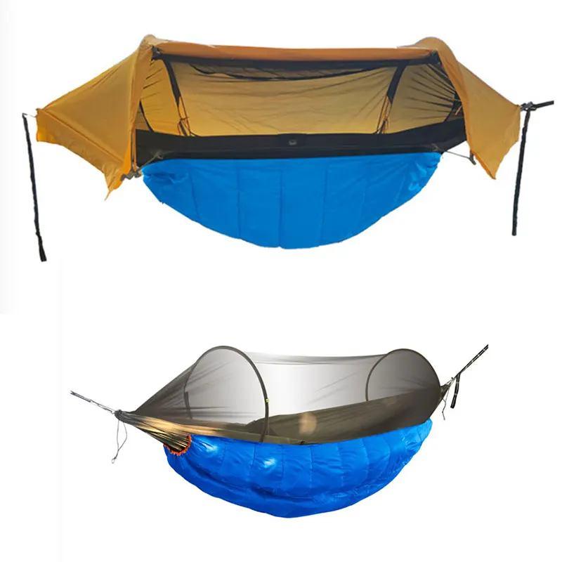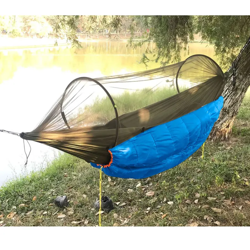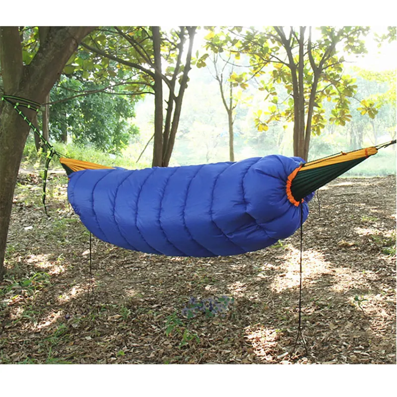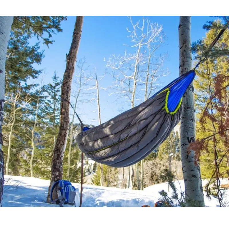 Winter Hammock သည် ဆောင်းရာသီပြင်ပစွန့်စားမှုများနှင့် စခန်းချခြင်းလုပ်ငန်းများအတွက် အထူးဒီဇိုင်းထုတ်ထားသော ပုခက်တစ်ခုဖြစ်သည်။ သမားရိုးကျ စခန်းချတဲများနှင့် အိပ်အိတ်များနှင့် နှိုင်းယှဉ်ပါက နွေးထွေးမှုနှင့် အကာအကွယ်များရရှိစေပြီး ပိုမိုသက်တောင့်သက်သာနှင့် သက်တောင့်သက်သာရှိသော အိပ်ရာပတ်ဝန်းကျင်ကို ပေးဆောင်ပါသည်။ ဒီထုတ်ကုန်ရဲ့ အားသာချက်တွေက သိသာပါတယ်။ ပထမဦးစွာ၊ Winter Hammock ၏ဒီဇိုင်းသည်အလွန် ergonomic ဖြစ်သည်။ ကိုယ်ထည်မျဉ်းကွေးနှင့် ဆွဲငင်အား၏ဗဟိုချိန်ခွင်လျှာကို အကောင်းဆုံးထည့်သွင်းစဉ်းစားထားပြီး သုံးစွဲသူ၏သက်တောင့်သက်သာနှင့် ဘေးကင်းမှုကို အပြည့်အဝအာမခံပါသည်။ ဒုတိယအနေဖြင့်၊ Winter Hammock သည် စခန်းချနေချိန်အတွင်း ရှောင်လွှဲ၍မရသော အပူလျှပ်ကာပြဿနာကို ဖြေရှင်းရန်အတွက် မူပိုင်ခွင့်ရရှိထားသော ဆောင်းရာသီအပူကာရံနည်းပညာကို အသုံးပြုထားပြီး အလွန်အေးသောရာသီဥတုတွင်ပင် နွေးထွေးနေနိုင်သည်။ ထို့အပြင်၊ Winter Hammock ၏ကာကွယ်မှုစွမ်းဆောင်ရည်မှာလည်း အလွန်ကောင်းမွန်ပြီး ခြင်များ၊ ပင့်ကူများနှင့် အခြားသော အင်းဆက်ပိုးမွှားငယ်များ ဝင်ရောက်ခြင်းမှ ထိရောက်စွာ ကာကွယ်နိုင်ပါသည်။ တဲတစ်ခုတည်ဆောက်ရန် သို့မဟုတ် နေရာများစွာယူရန် မလိုအပ်သောကြောင့် စခန်းချရန်အတွက် သဘာဝပတ်ဝန်းကျင်နှင့် သဟဇာတဖြစ်ပြီး ရေရှည်တည်တံ့သောနည်းလမ်းလည်းဖြစ်သည်။ Winter Hammock သည် အလွန်ကောင်းမွန်ပြီး လက်တွေ့ကျသော ဆောင်းတွင်းစခန်းချကိရိယာတစ်ခုဖြစ်ပြီး သုံးစွဲသူများအား ပြင်ပလှုပ်ရှားမှုများအတွင်း ပိုမိုသက်တောင့်သက်သာနှင့် ဘေးကင်းလုံခြုံစွာ အိပ်စက်နိုင်သည့် ပတ်ဝန်းကျင်ကို ခံစားနိုင်စေကာ သဘာဝပတ်ဝန်းကျင်နှင့် ပိုမိုသဟဇာတဖြစ်ပြီး ရေရှည်တည်တံ့နိုင်စေပါသည်။
